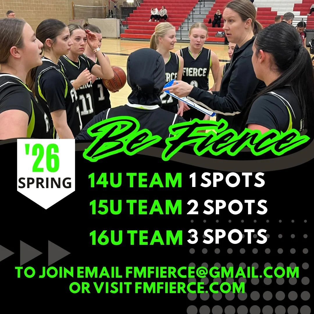 There is still time to join our teams for the spring AAU Season. Click on the 2026 Season Tab and fill out the registration form or email fmfierce@gmail.com (Posted 2.22.26)